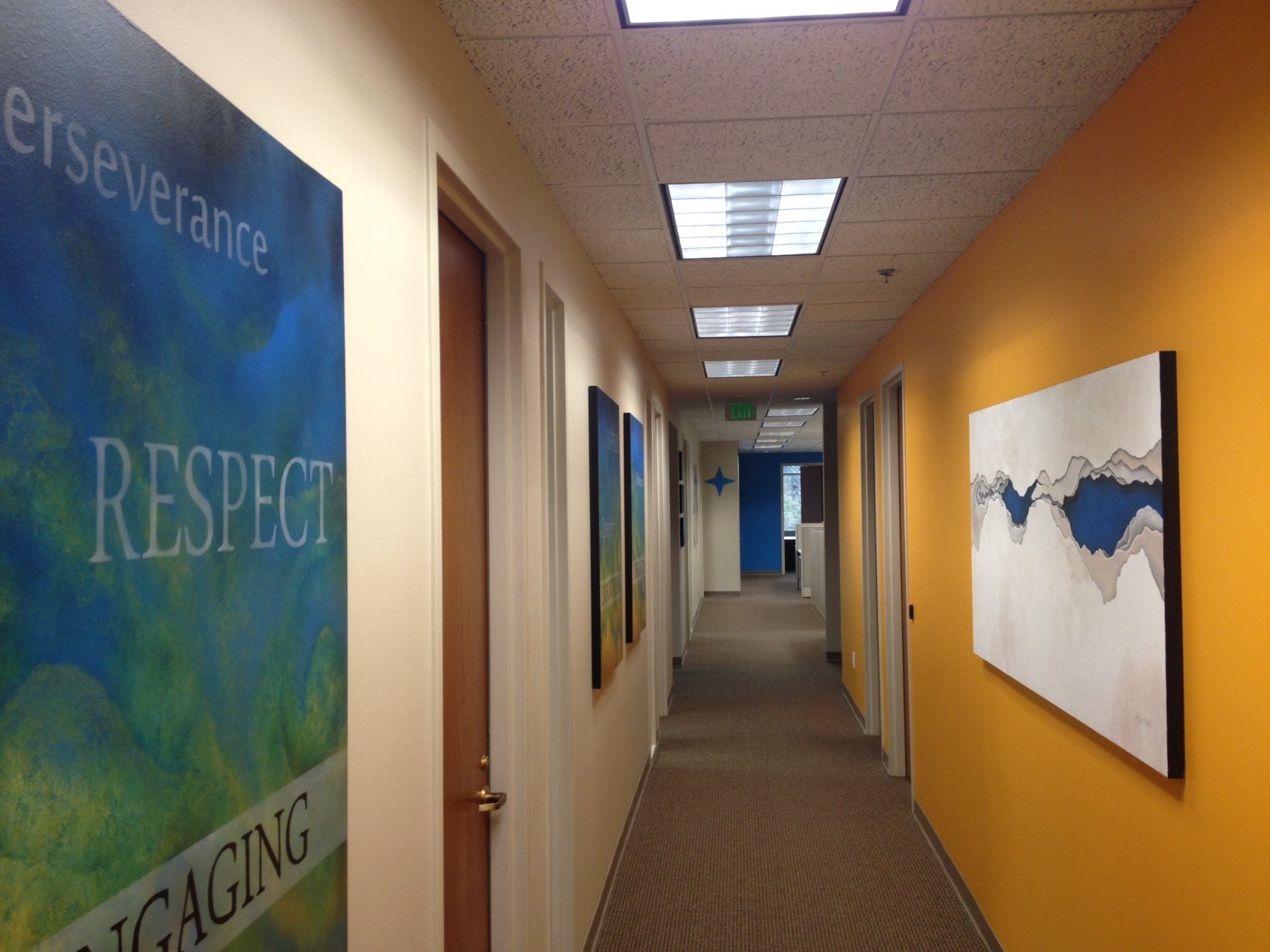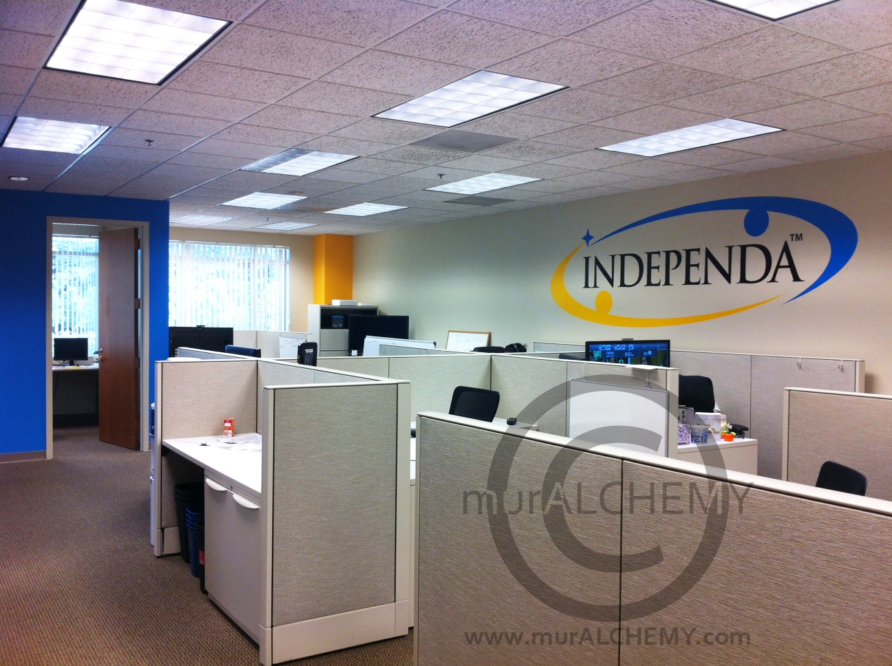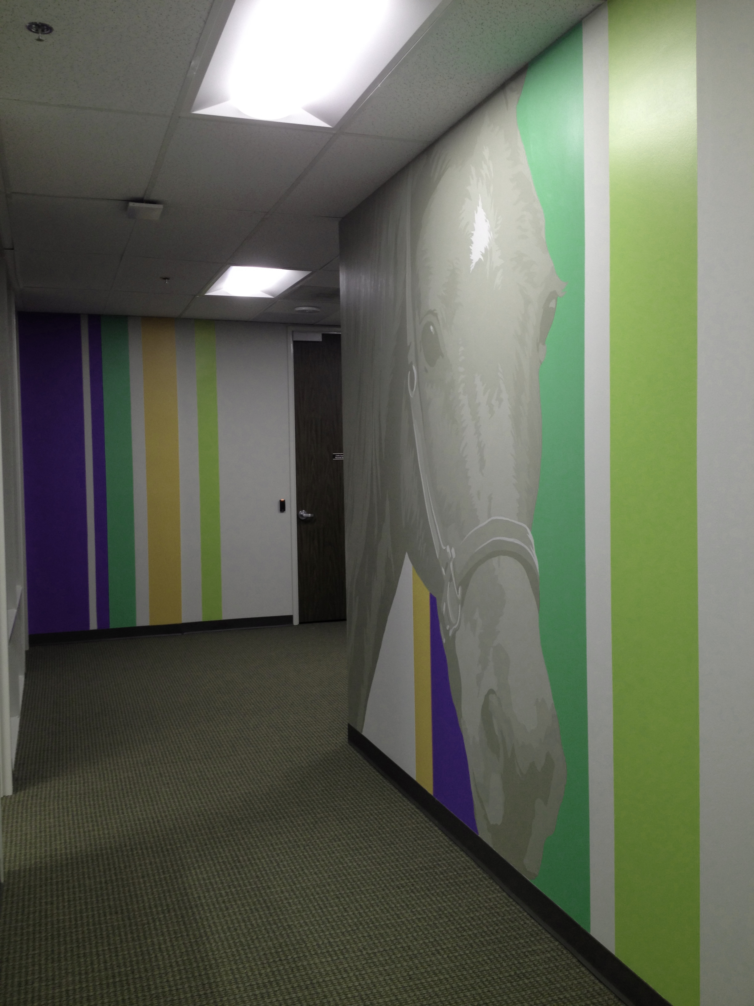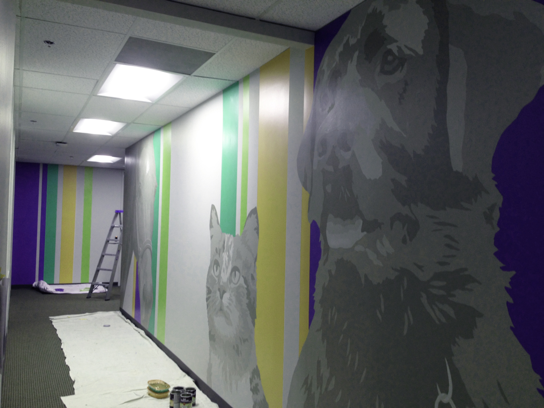 Logo, Accent Walls Matched to Brand Colors, Custom Canvases