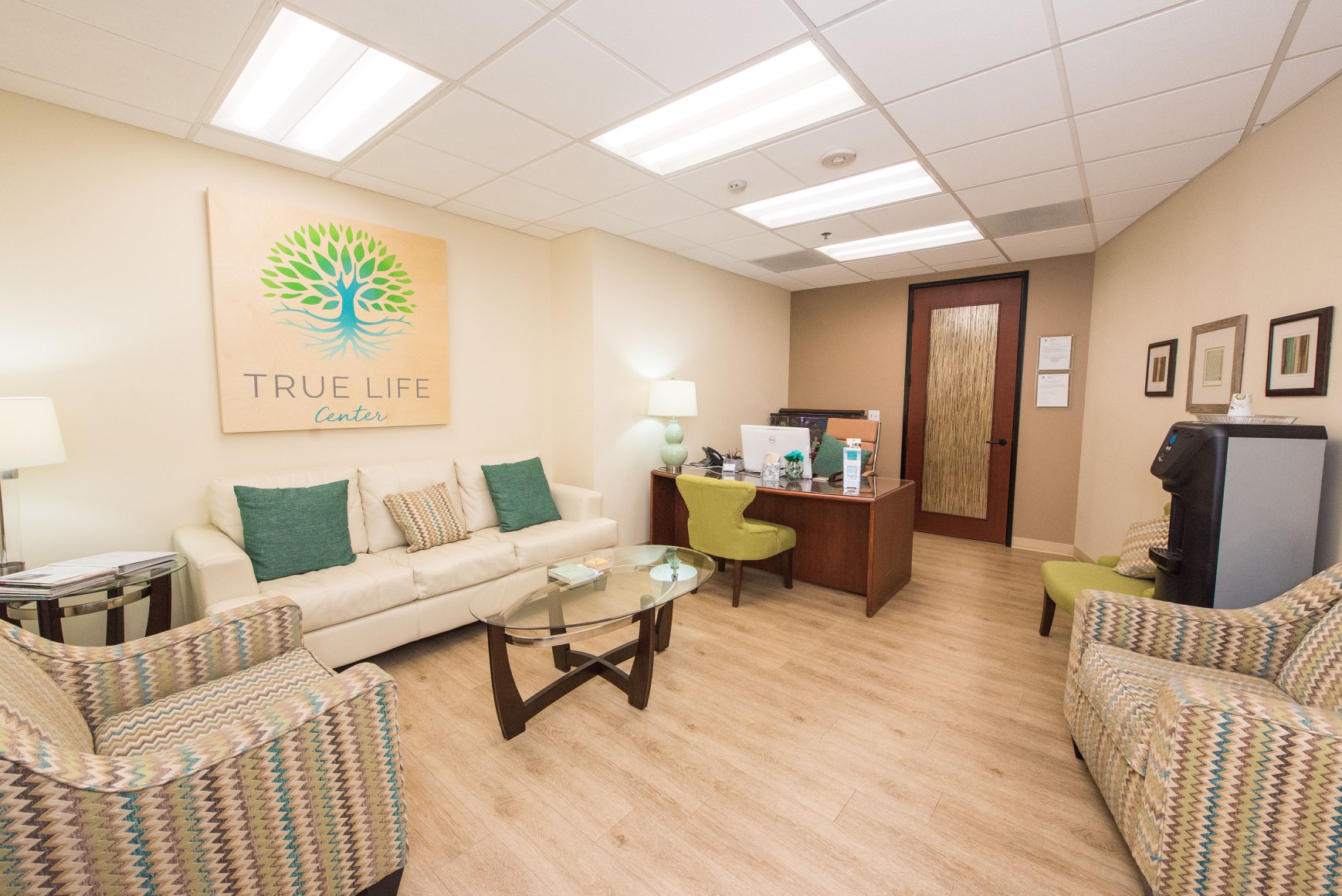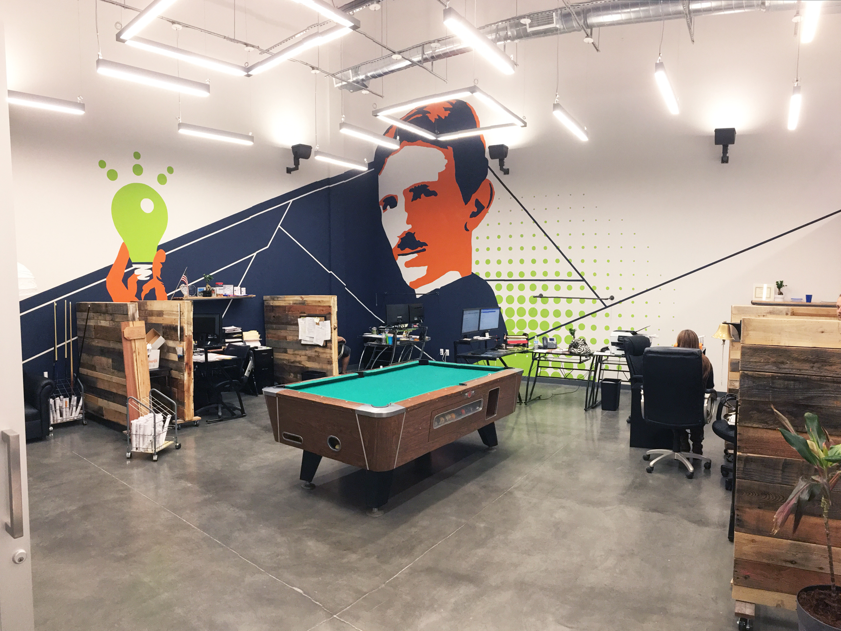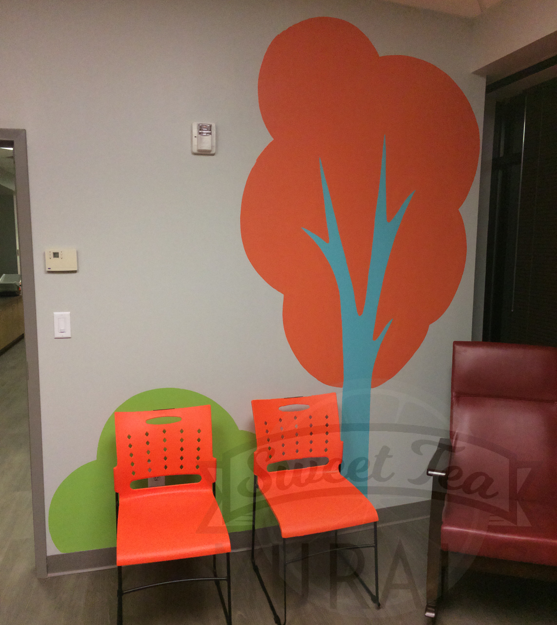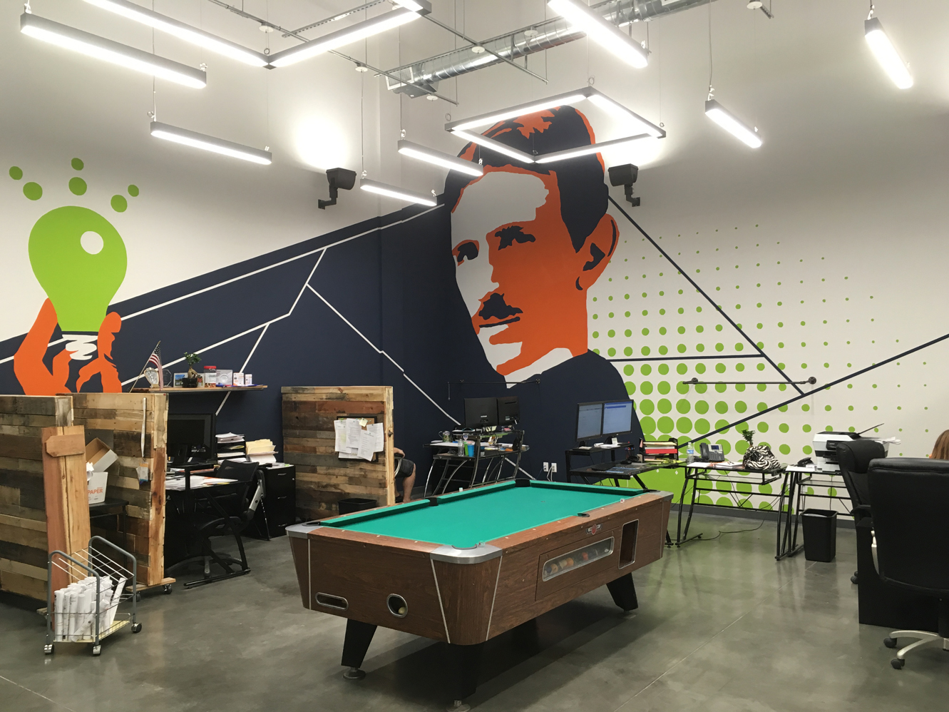Logo, Accent Walls Matched to Brand Colors, Custom Canvases