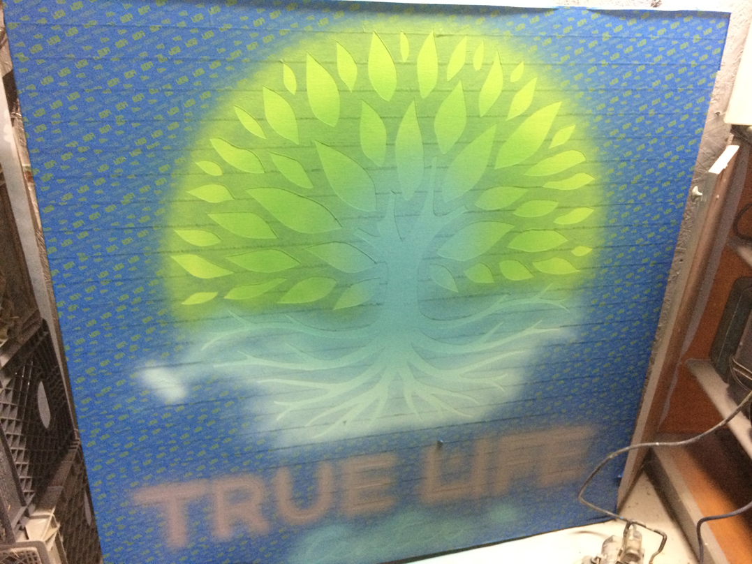 Logo Painted On Mural Fabric with Two-Part Anti-Graffiti Coating Before and After